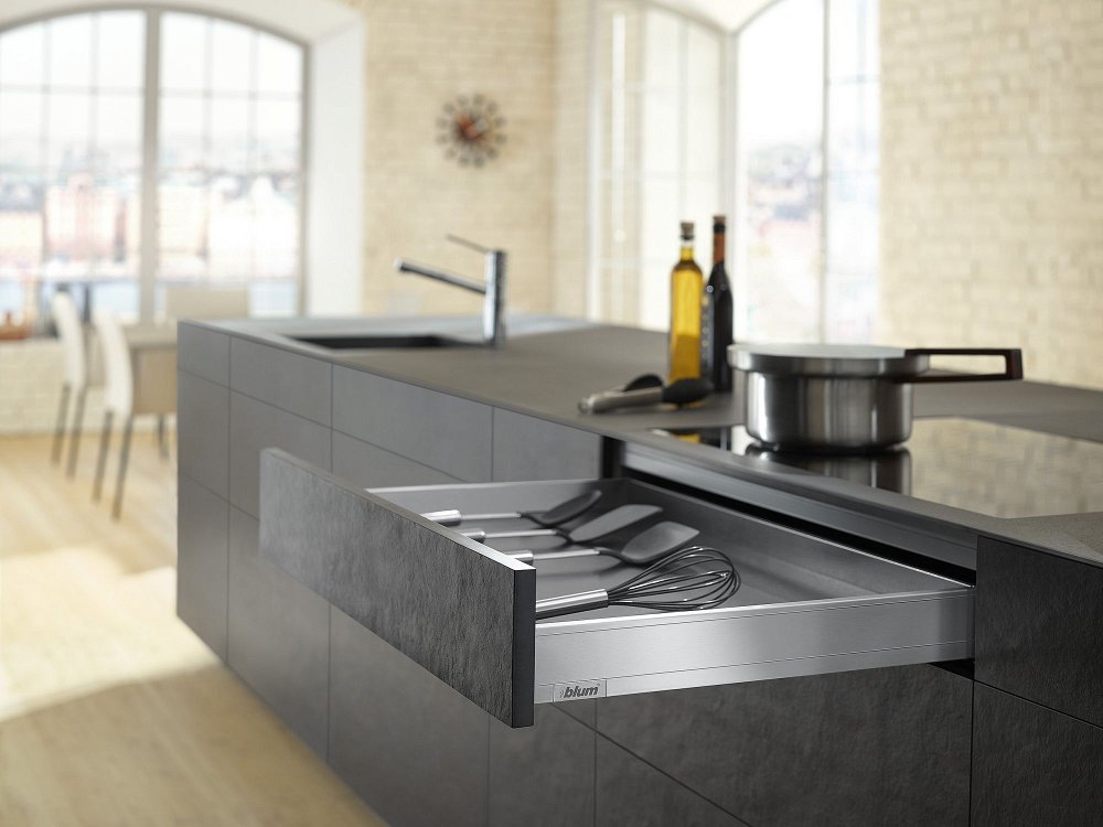 Ящик TANDEMBOX antaro отличает простой язык форм независимо от того, какой это ящик: с прямоугольным релингом или вставками. Все комплектующие выполнены в единой цветовой гамме, что еще больше подчеркивает строгий дизайн изделия.